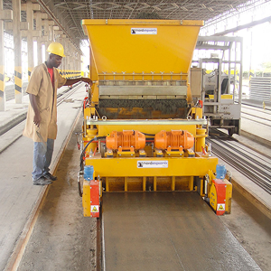 Les machines slipformer de Nordimpianti permettent également la production flexible de dalles alvéolées (hollow core slabs).